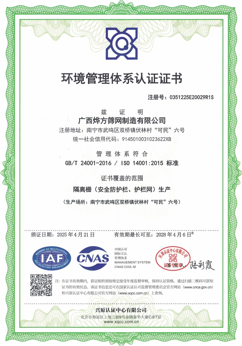 111 廣西燁方篩網制造有限公司-環境管理體系認證!